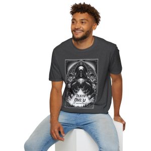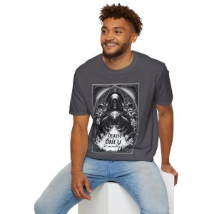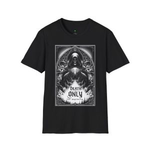 Whether you’re exploring unknown worlds or simply enjoying a casual gathering of fellow enthusiasts, our “Death Is Only The Beginning” tee is your armor in the realm of style and expression.
