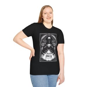 Embark on a journey beyond with our “Death Is Only The Beginning” tee, a tribute to the timeless tales and sagas that define Geek Chic and Pop Culture Fashion. This shirt isn’t just a piece of clothing; it’s a statement, a conversation starter, and a nod to the narratives that thrill and chill us.
