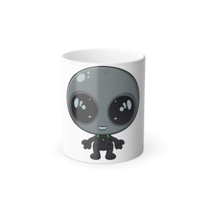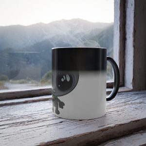 Elevate your daily routine to cosmic heights with the ‘Galactic Buddy Quark’ mug, where every beverage break is an interstellar journey. This charming mug features a heat-sensitive design that reveals your very own Galactic Buddy when filled with your favorite hot drink. Watch as the dark expanse of space on the mug’s exterior gives way to the delightful visage of Quark, your friendly cosmic companion, making every sip an adventure through the stars.