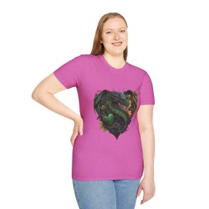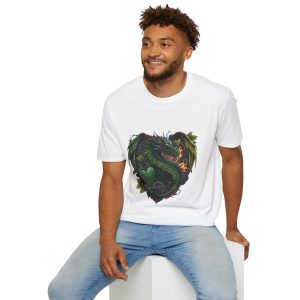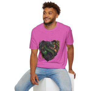 Step into an enchanting realm with our ‘Heart of a Dragon’ Tee! Crafted for lovers of lore and legend, this t-shirt showcases a stunning green dragon, symbolizing the power and mystery of fantastical worlds. The unisex jersey short sleeve cut offers timeless comfort for any gender, making it an ideal gift for dragon aficionados.